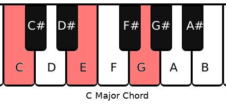 For example, in case of C Major chord, the three notes will be C, E and G (see above).