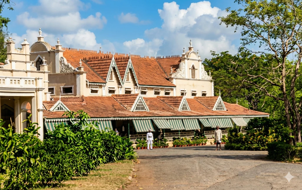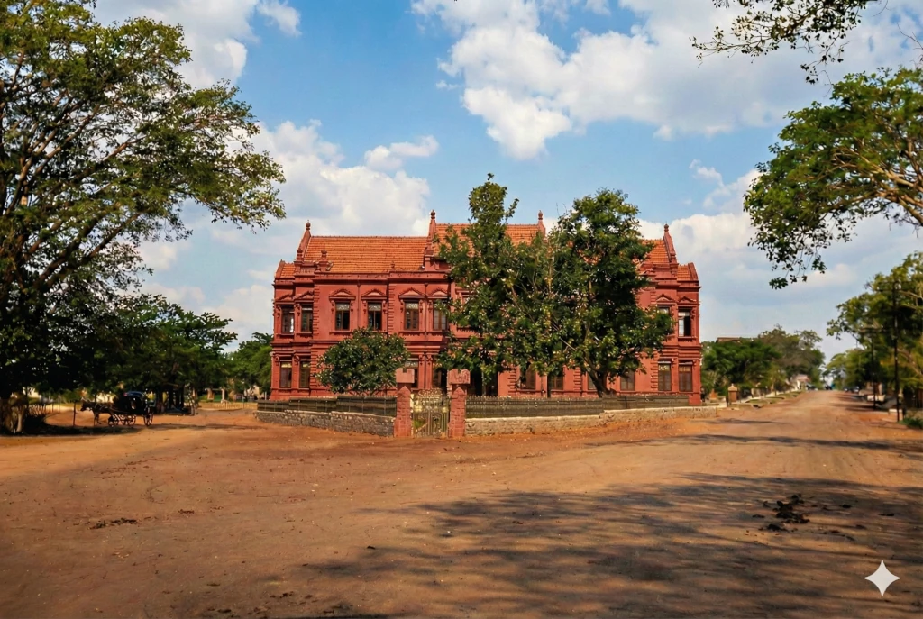 The building was deliberately constructed on an elevated area, to provide commanding views of the surroundings, which included the military parade grounds and Ulsoor Lake in the distance. This is an AI restored photo from an 1890 photograph. The M.G. Road of today was then called South Parade Road.
