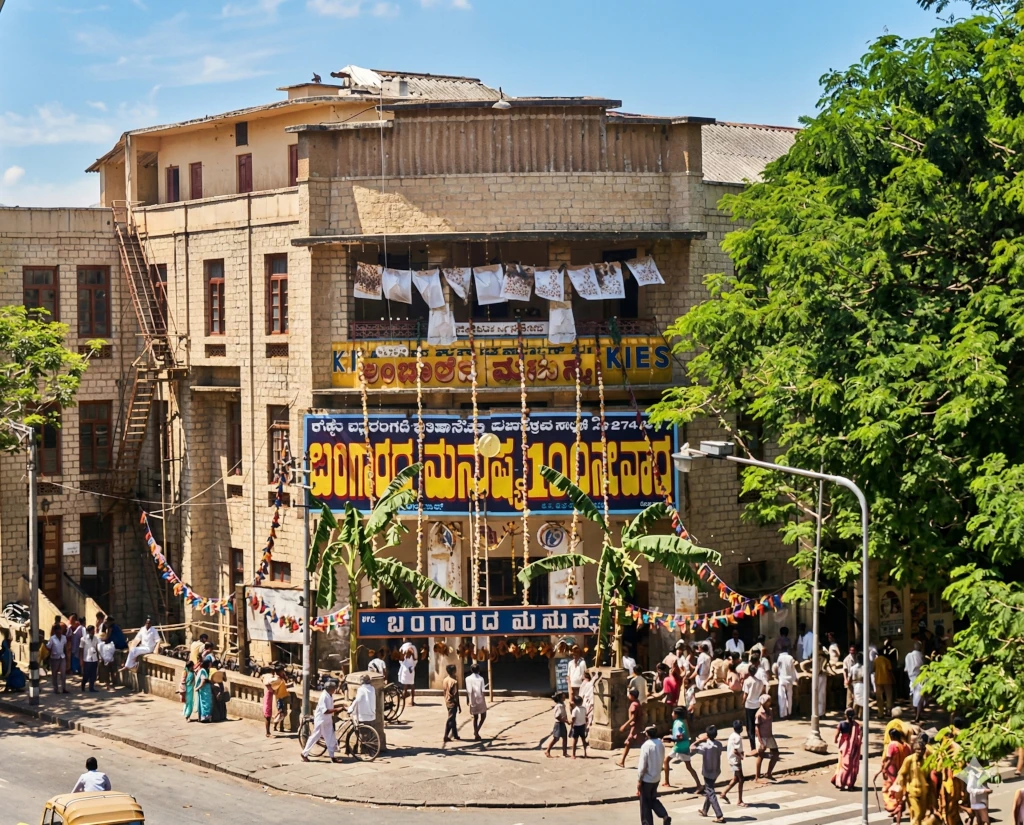 You can clearly read the massive Kannada banner, see the traditional banana stems tied to the pillars for good luck, and feel the festive energy. This wasn’t just a movie; it was a movement that inspired educated youth to return to farming.